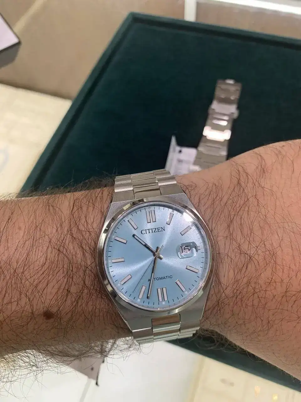 En mi caso, me probé un reloj similar como es el Tissot PRX y no me transmitió tanto como este Tsuyosa. El Tissot me lo veía desproporcionado en cuanto a la longitud de asas, me sobresalía por los lados de la muñeca, y puesto también lo veía algo sos. En cambio el Citizen fue un flechazo, comodísimo, precioso a mi modo de ver y con unas prestaciones muy buenas por lo que cuesta.