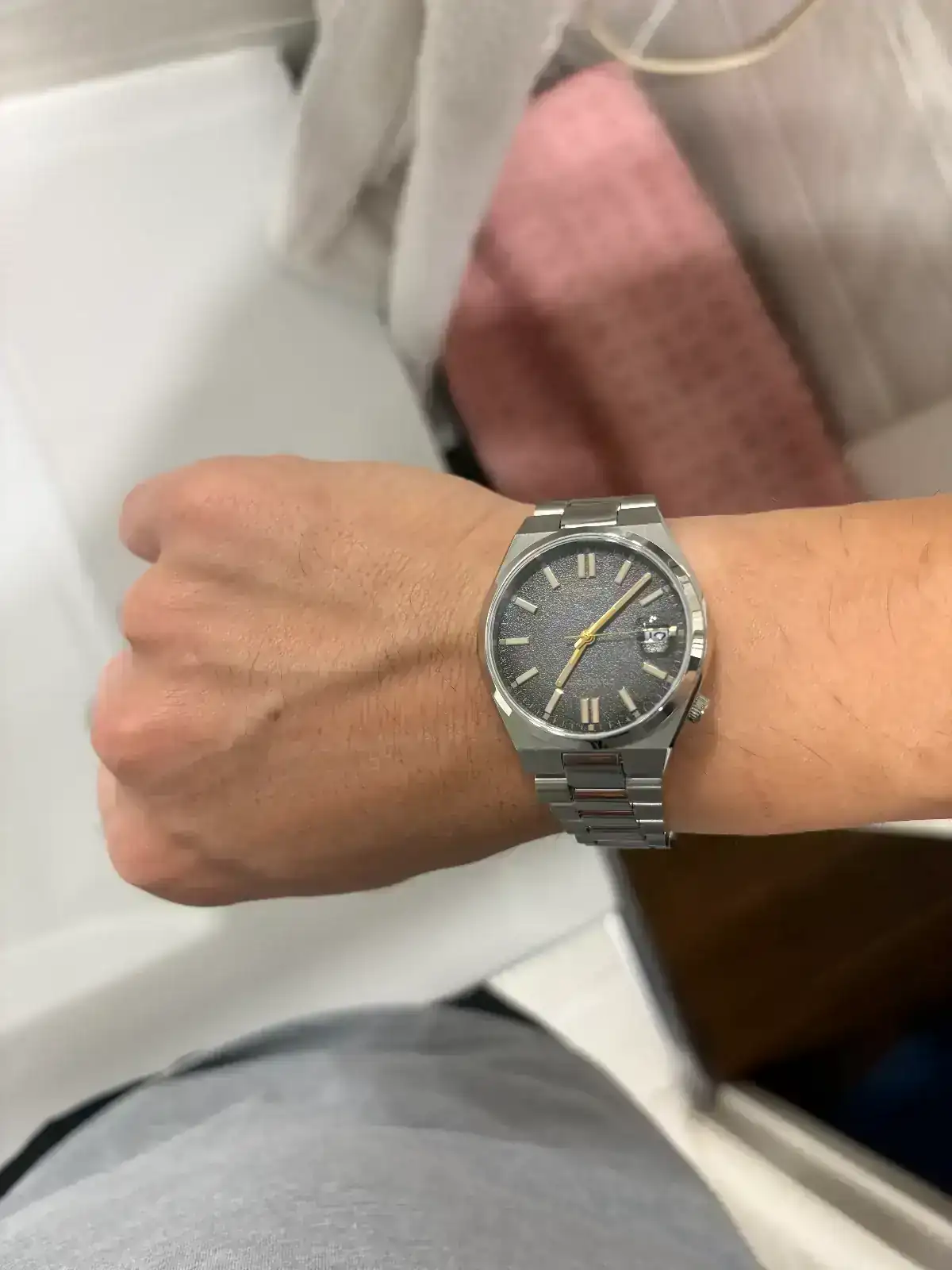 Esos 3mm se notan y mucho a la hora de la comodidad entre ese lug to lug menor y el brazalete más estrecho que el 40mm, esta edición limitada tiene una esfera y un color de agujas de una elegancia sublime, no es tan deportivo como la otra versión que poseo, pero sí más fácil de combinar con ese color sobrio y esos matices de la esfera fumé 🩶