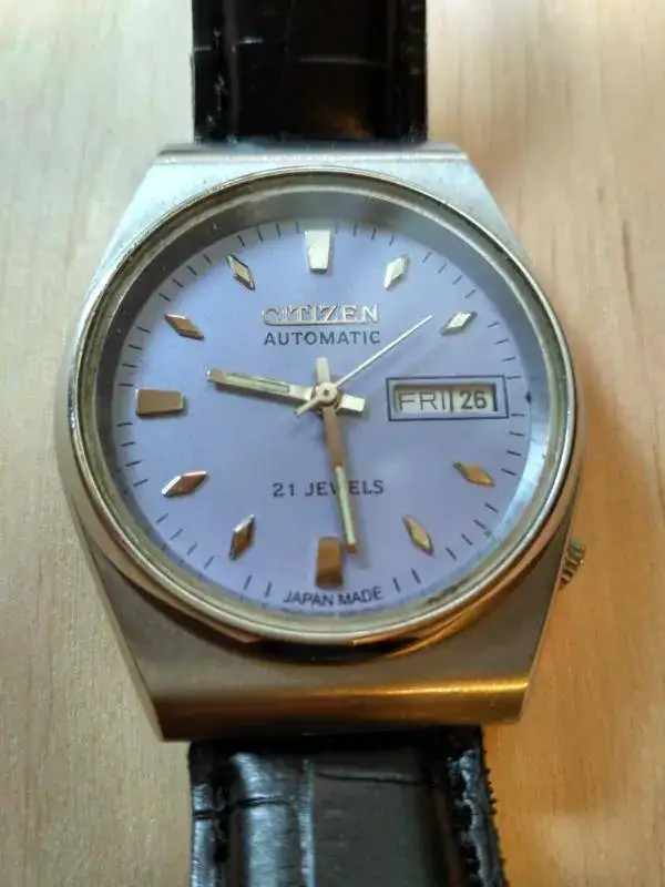 Hola a todos, saco a la vente este Citizen automático vintage en un estado muy bueno, solo alguna pequeña micromarca en el pulido a espejo de la caja y en el bisel, sin marcas en el cristal. Tiene una bonita esfera morada.