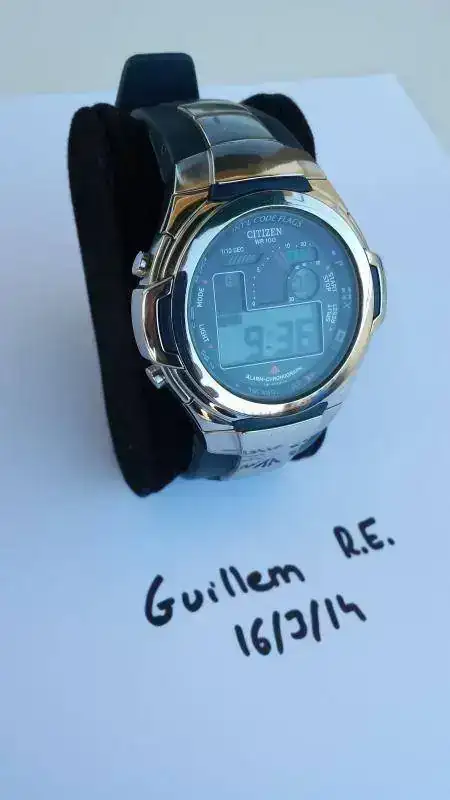 ' así que los más puristas podéis dejar de leer. Su anterior dueño pretendió desenroscar la tapa de fondo sin llave jaxa, con lo que le dejó unas marcas ostensibles de chapucero. Lástima de ellas porque el reloj está como nuevo. Para los menos puristas, decir que como estas marcas están en el fondo y no se ven, el reloj una vez puesto pasa como casi nuevo.Funciona perfectamente y la duración de la pila es altísima, pues no he tenido que cambiarla.