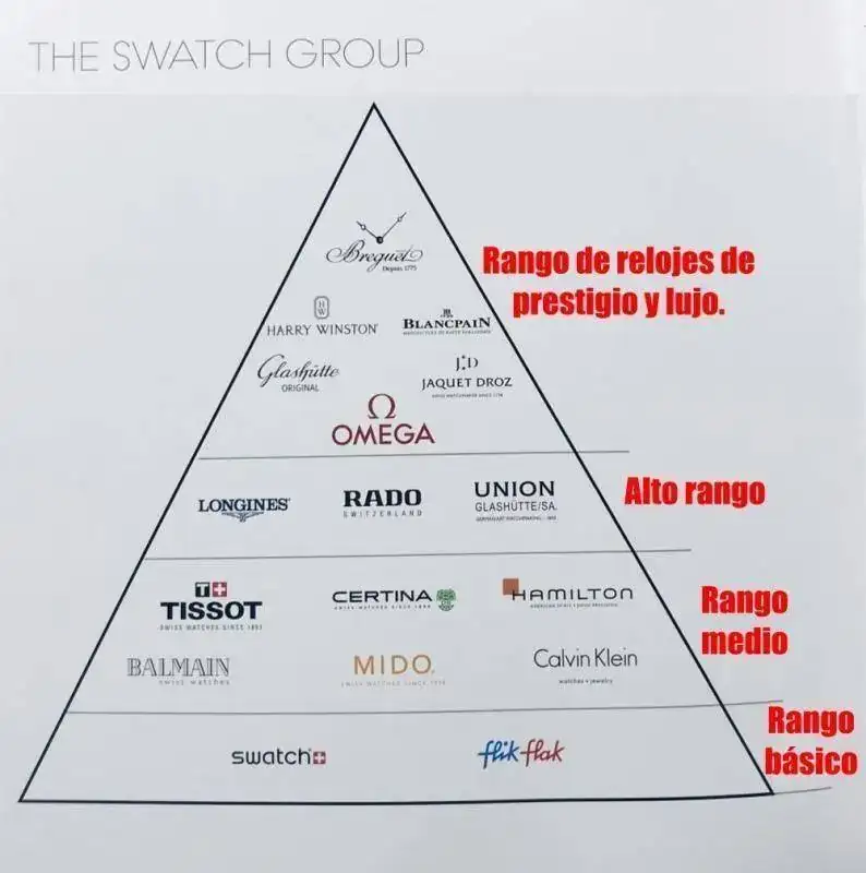 Si os fijáis, la clasificación que hace es por rangos de precio y posicionamiento de cada marca. Es cierto que mete a Omega en el mismo rango que Breguet, pero a Omega la pone en la base y a Breguet arriba del todo. Y lo mismo con el resto.