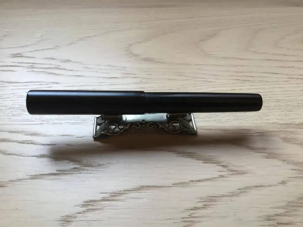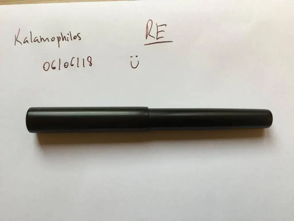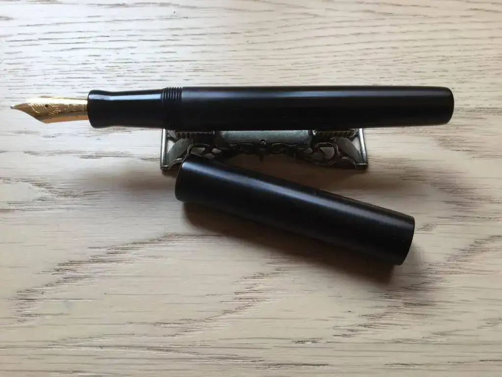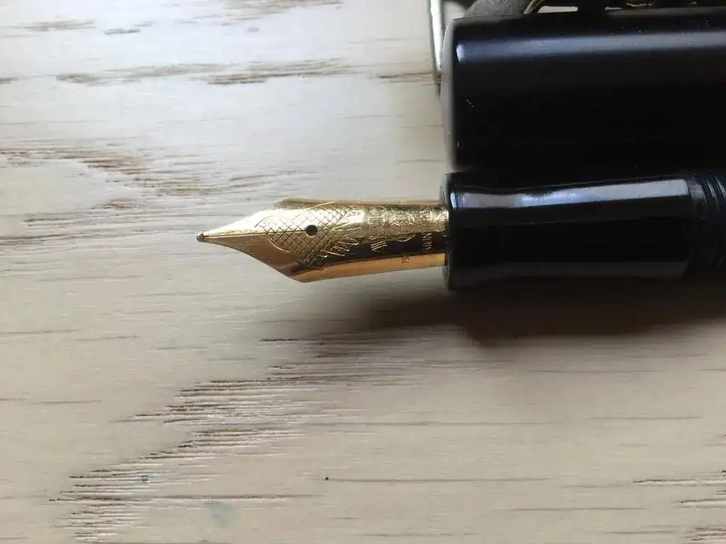 Esta es una Clavijo de ebonita negra (más mate el cuerpo y capuchón, más pulida la sección), que lleva un plumín Montblanc de la serie Músicos (Donation series) con la paloma de la paz grabada, oro de 14 k. en punto F.