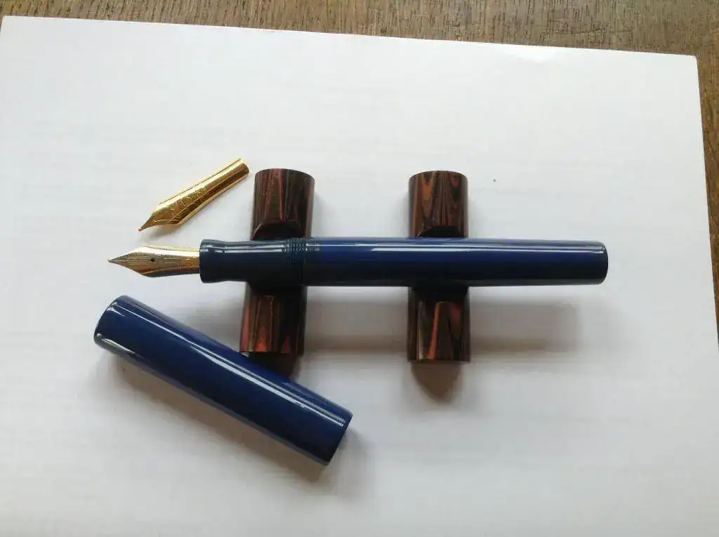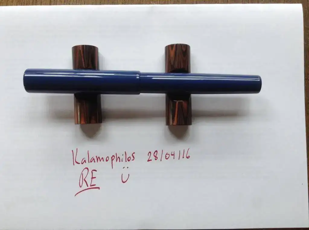 Las dos primeras plumas que le encargué a Gabriel Clavijo fueron una negra y una azul de ebonita, del tamaño de una MB 146, sin clip y con plumín Bock de acero no. 6.