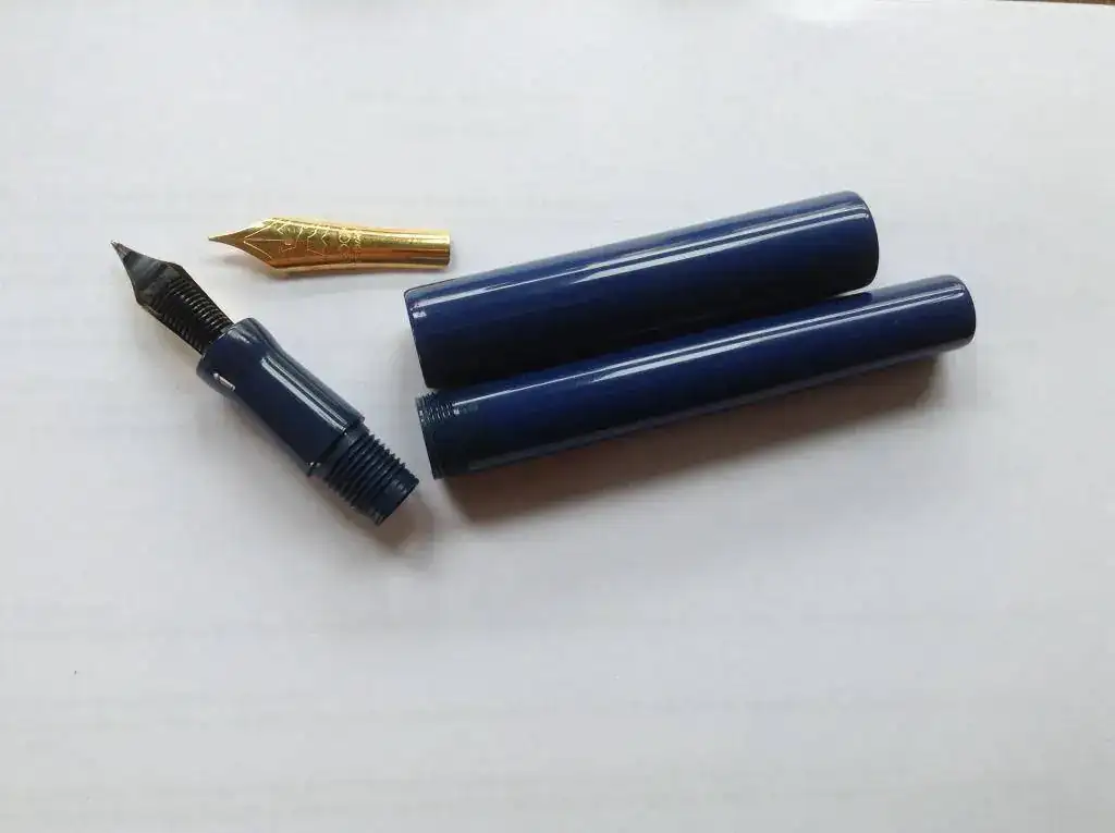 La pluma está como nueva, mide 14 cm cerrada y ahora monta un plumín de Parker Duofold Centennial de segunda generación en punto M. Es un plumín de oro de 18 k. Envío también el plumín original Bock de acero punto M que no usé. Cambiar uno por otro es sencillo.