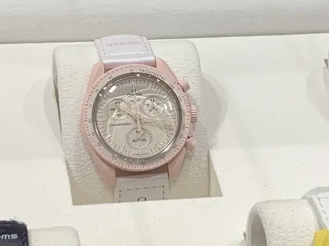 Me gustan mucho, son "asequibles", homenajean de forma muy acertada a uno de los mitos de la relojería (homenaje de verdad, nada de eufemismos) que además es un cronógrafo precioso, las combinaciones de colores son muy acertadas y han tenido los santos huevazos de plantarles el logo de Omega en la esfera, además arriba del todo (los hubiera entendido igual solo marcados como Swatch)