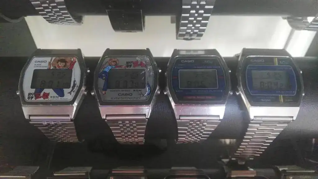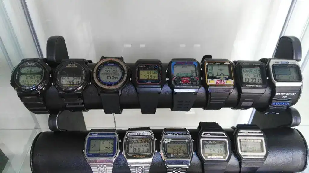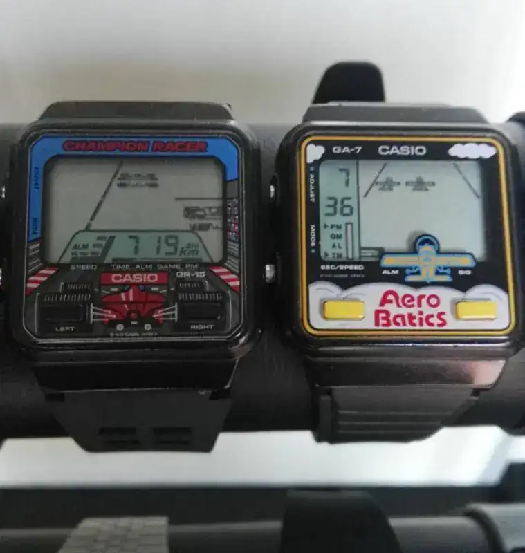 Casio Cosmo Phase, Casio Moon Graph, Casio Horoscope, Casio Lottery, Fórmula 1, Aero Batics, Casio Poker, Casio GM-10 (primer reloj con videojuego de la historia) y Casios Melody.
