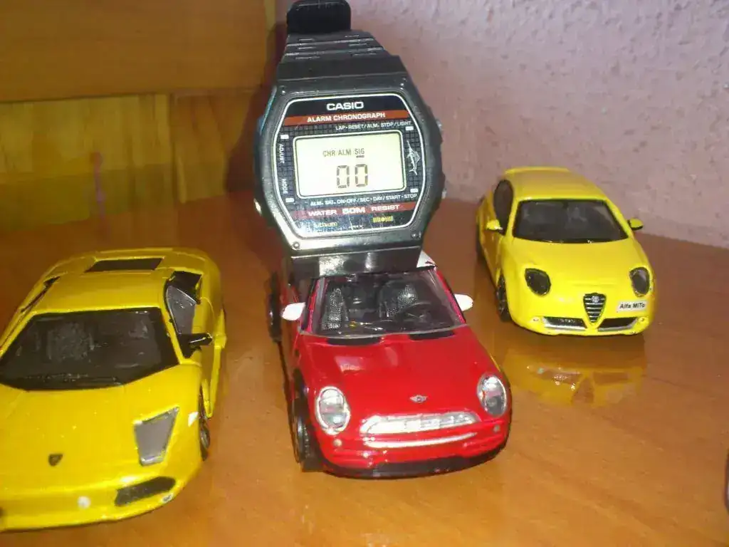 El modelo que sale en la foto es un CASIO lw 50.Lo se porque tuve uno de niño, en los 80.