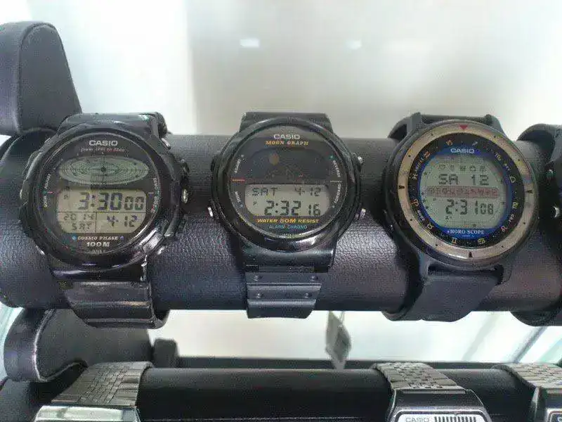 Si el anterior era grande, este es sencillamente "enorme". Lo elegí blanco pues me parece la elección más especial si hubiera sido un vintage añejo. Un blanco de aquellos años tiene un precio más alto y es más exclusivo. Su presencia es imponente. Lo que más me llama la atención es su correa con un acabado brillo excelente. Lo que menos (el ya hablado aquí y en Zonacasio), su módulo. Básico, muy básico. Porqué no fué un multi-alarma que rememmorara al maravilloso DW-200. Porqué no lleva una "D" antes que su "W"? Es una oportunidad perdida para homenajear tanto a un Marlin mítico, como a los grandiosos "HD´s". Otra cuestión es el intercambio cambio lugar para los botones la luz y las funciónes. Aquí la luz está a la derecha y las funciones a la izquierda. Llamativa curiosidad que no me desagrada. Siempre es bueno cambiar.