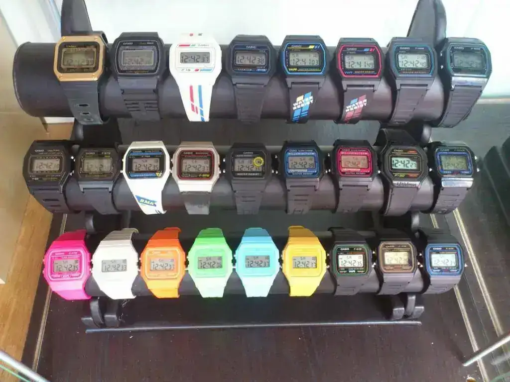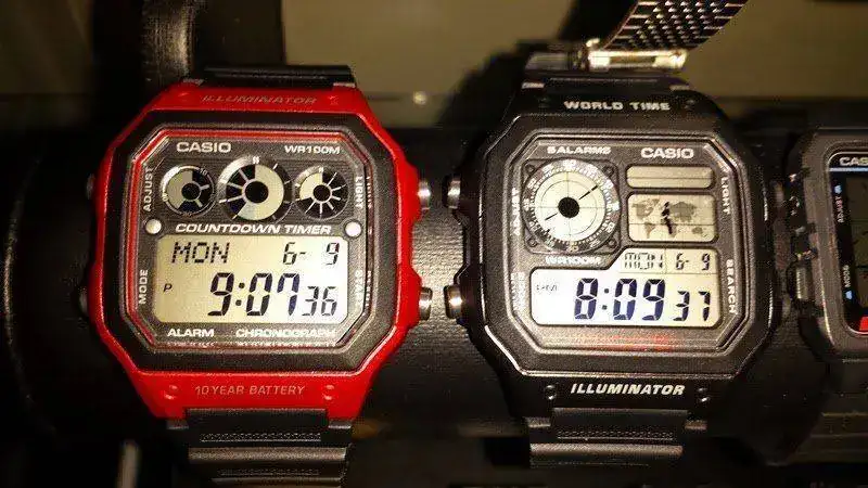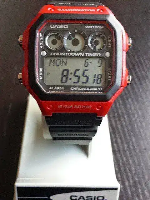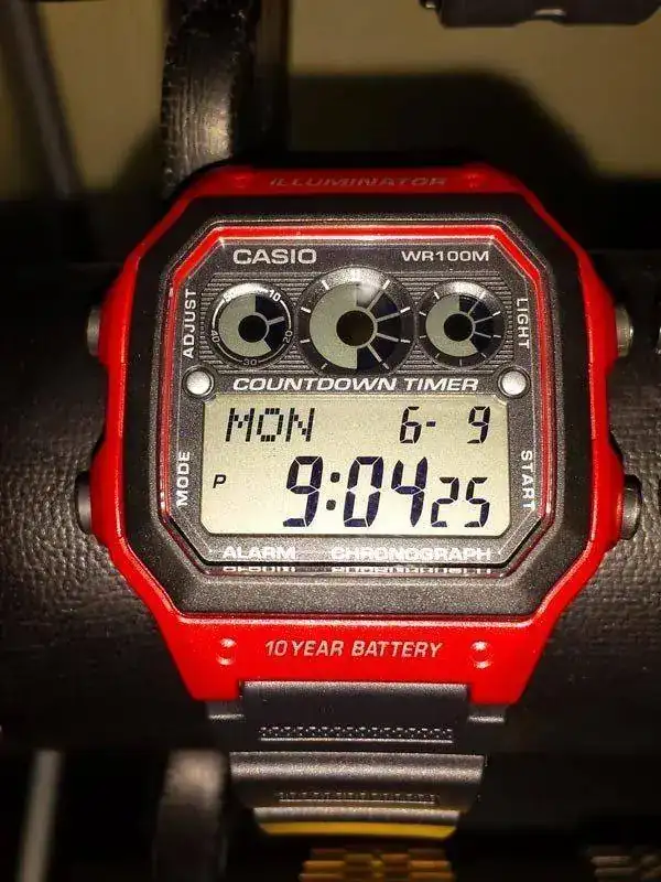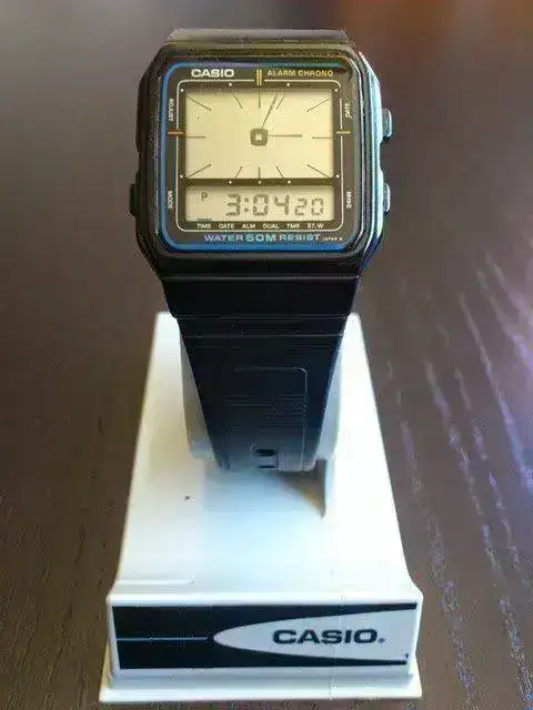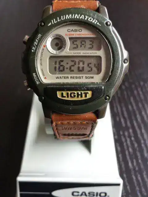 Como os dije antes. Junto al primero me llegó un inesperado regalo. Éste W-89H del que no tenía información. Un curiosísimo modelo que por aspecto situo entre los años 1990 y 1996. La mayor peculiaridad está en que sólo dispone de dos botones y con ellos realiza todo el juego de funciones: alarma, crono, hora. Tiene un precioso iluminator verde. La verdad me he sorprendido muy gratamente con este modelo. Buceando un poco en la red he comprobado que su correa nato, es de serie, algo extraño en los Casio pero que lo hace doblemente bonito. También destaca su círculo superiorderecho marcando las funciones, muy similar al del F-94W, que cría única...otra sorpresa.