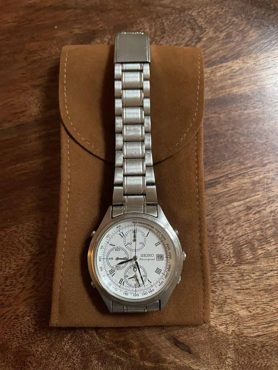 MI PRIMER RELOJ: Cronograph de Seiko (vintage?) de aprox30 años que no utilizo pero guardo con mucho cariño ya que fué mi primer reloj. Fué un regalo de mi padrino a principios de los 90 por mi comunión, por lo que tiene un gran valor sentimental para mi.