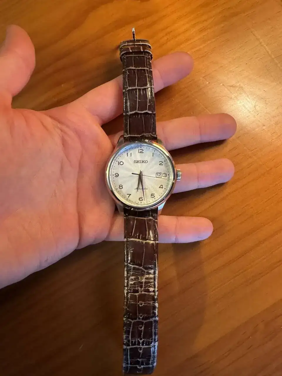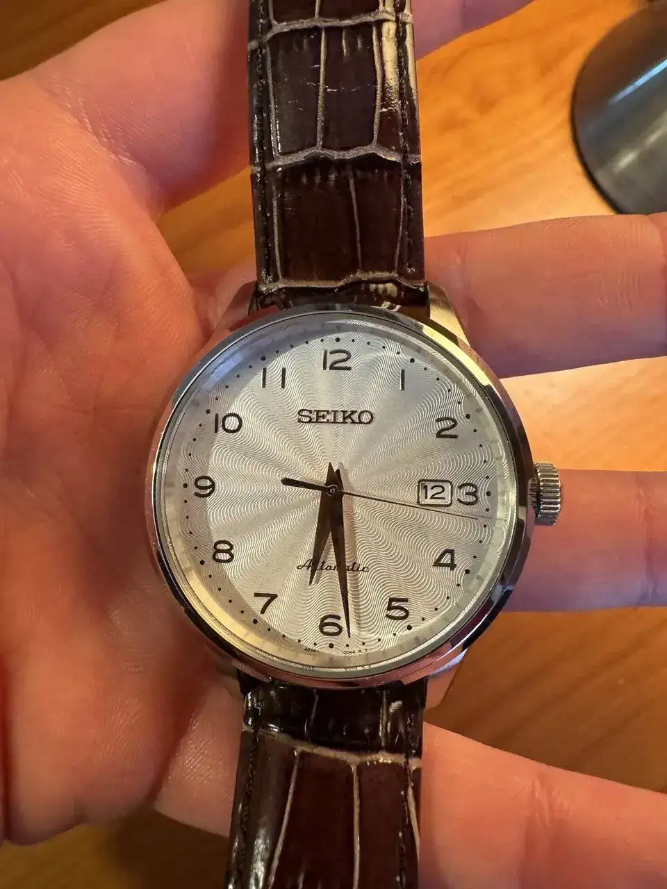 Hoy os muestro de cerca este seiko automático. Precio de compra alrededor de 250€. Muy contento con el rendimiento.Destacar por ejemplo de la caja de la izquierda, que el de enmedio (seiko) y derecha (duward), fueron recuperados del baúl de los recuerdos ya que pertenecían a mi abuelo y tras una puesta a punto por relojero y, cambio de correas por unas nuevas, han quedado ambos magníficos.
