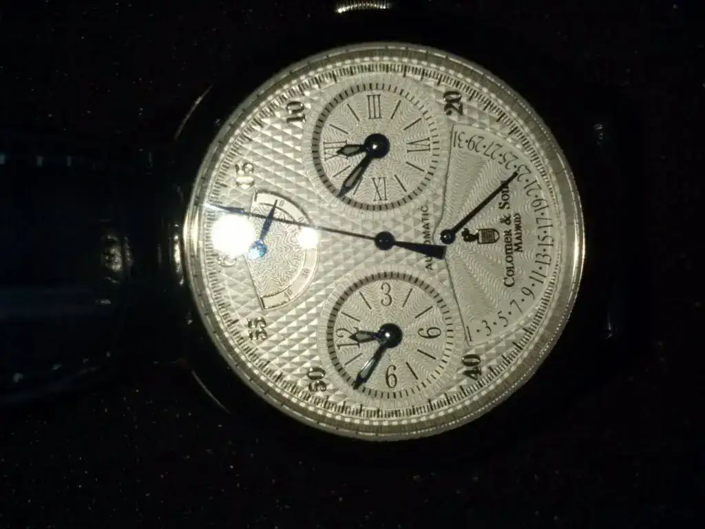 Reloj con doble zona horaria,reserva de marcha a las 12 h., Calendario Flyback a las 6 h.En un estado extraordinario.Si quieren mas fotos, no hay ningun problema en enviarlas.