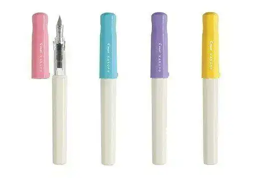 Mientras los de Lamy se pasan todo un año para sacar un color nuevo de la Safari y otras los de Pilot parecen que se están dedicando a combinar colores todo el día. Hace unos meses sacaron la Kakuno con cuerpo gris y distintos capuchones. Ahora sacan con el cuerpo blanco y los capuchones con colores pastel. Otra diferencia es que ahora el clip nos guiña un ojo.