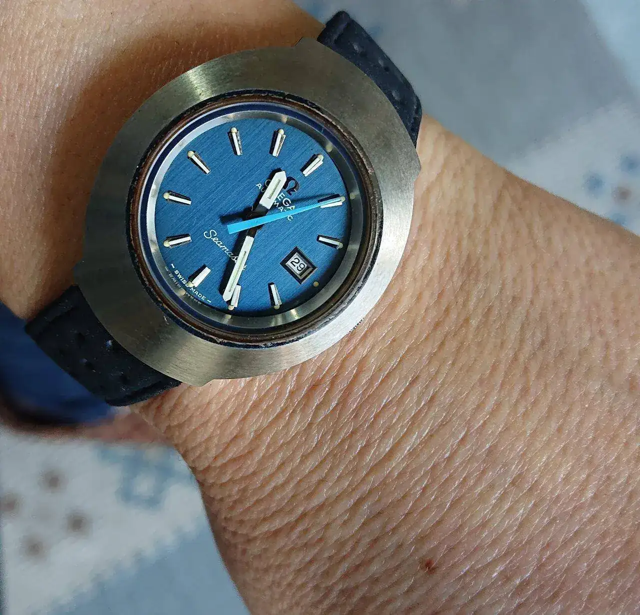 Este Seamaster pilot cambia bastante con la luz