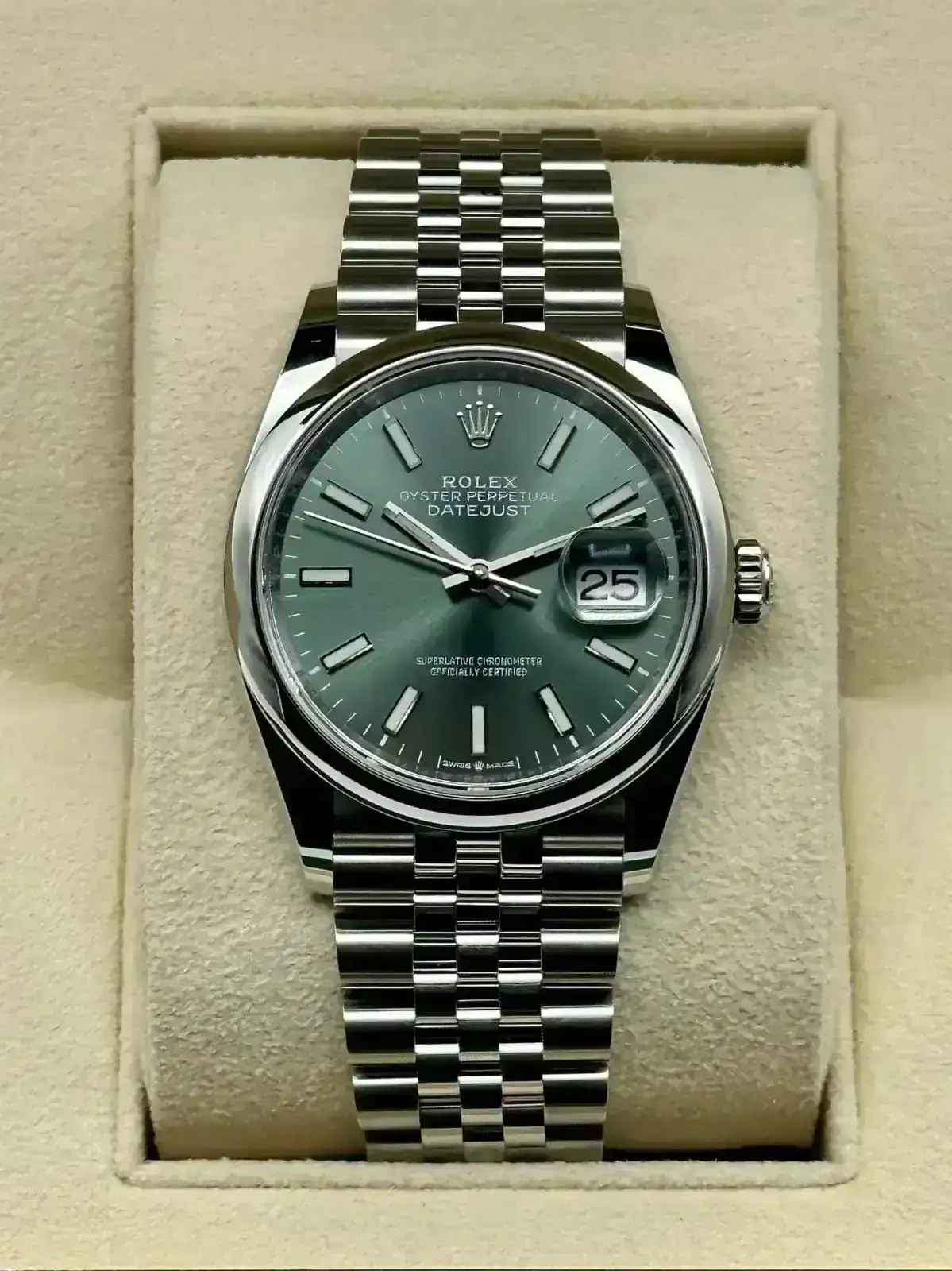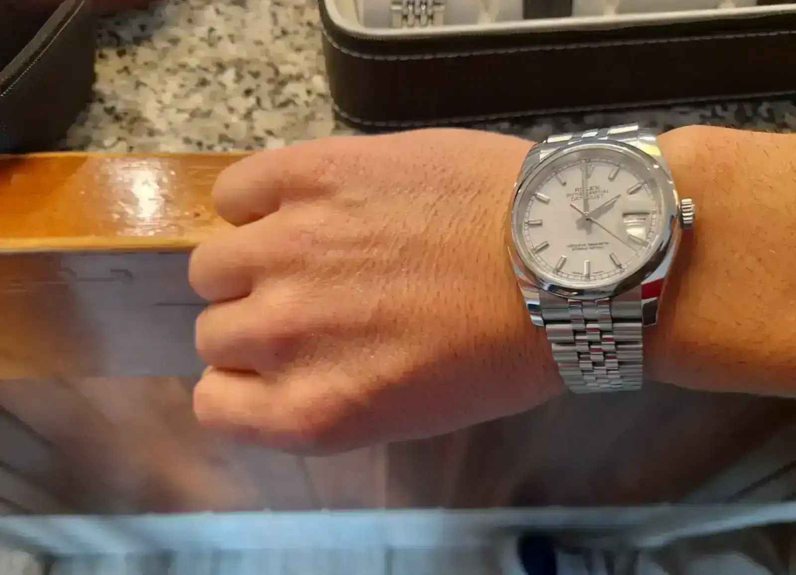 El bisel liso en 36 lo convierte en un reloj mucho más discreto que el estriado, además de tener un carácter más casual. Me gusta mucho el estriado tb, pero pasa a ser un reloj más joya. En cuanto a brazalete sucede lo mismo. Me gusta más jubilee pero es bastante llamativo respecto a oyster. Además, creo q en 36 se agradece el volumen que aporta el oyster... es justamente la combinación que pedí hará 2 años aprox y llegó este septiembre. Descarto estriado + oyster, me resultan inconexos.