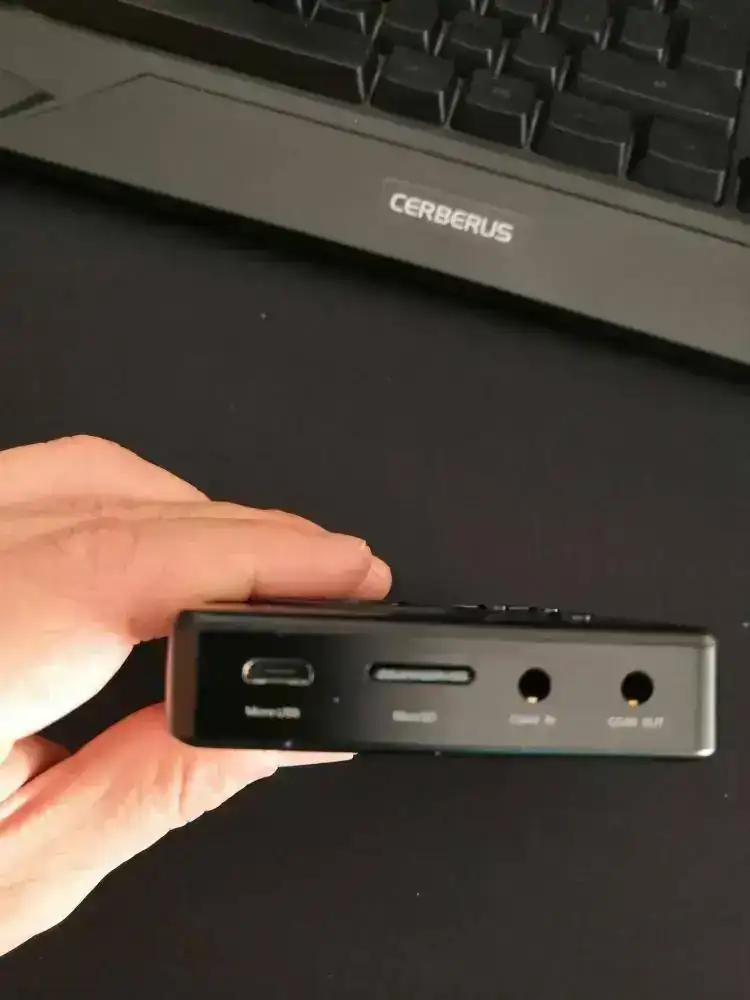 B) Reproductor DAC HIFI HIDIZS AP100: reproduce WAV, FLAC, MP3, WMA, OGG, AAC, APE, AIFF, ALAC e incluso DSD formatos de archivos de audio sin pérdidas. Tamaño "pocket player"(107mm*65mm*16mm y pesa tan sólo 139 gramos). Principales características:
