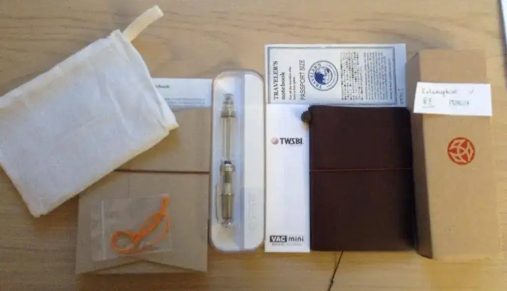 Pluma Twsbi Vac mini transparente punto M con todo lo que trae de origen (cajas exterior e interior, herramienta, aros, silicona, etc.) Lo único que quiero hacer notar es que el clip se mueve unos milímetros en su sitio. Tiene una tuerca por dentro que supongo sirve para apretarlo, pero no lo he intentado. PVP 75 €