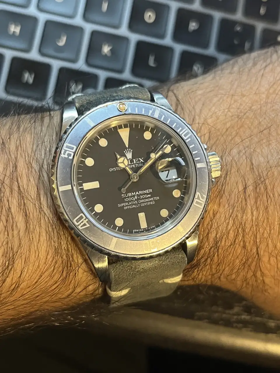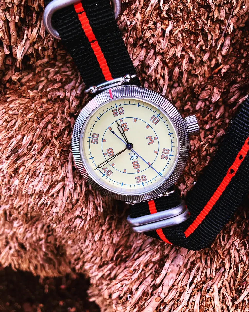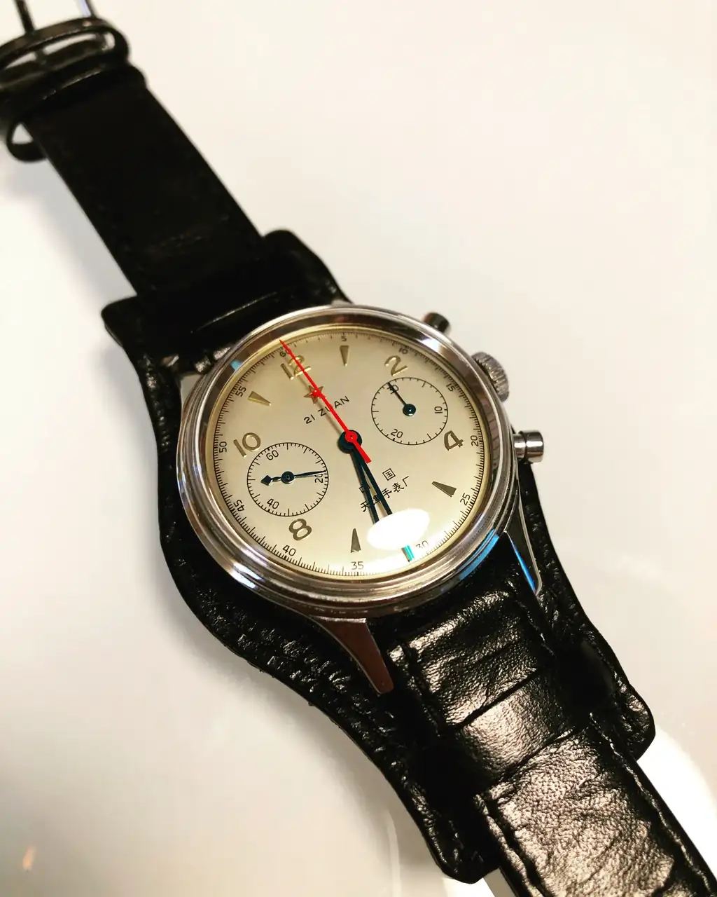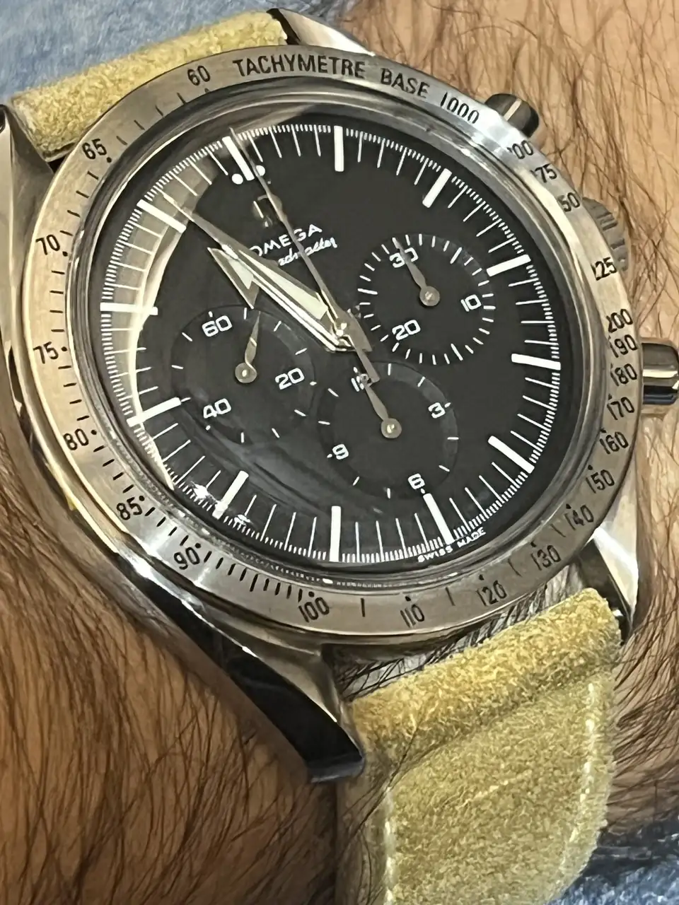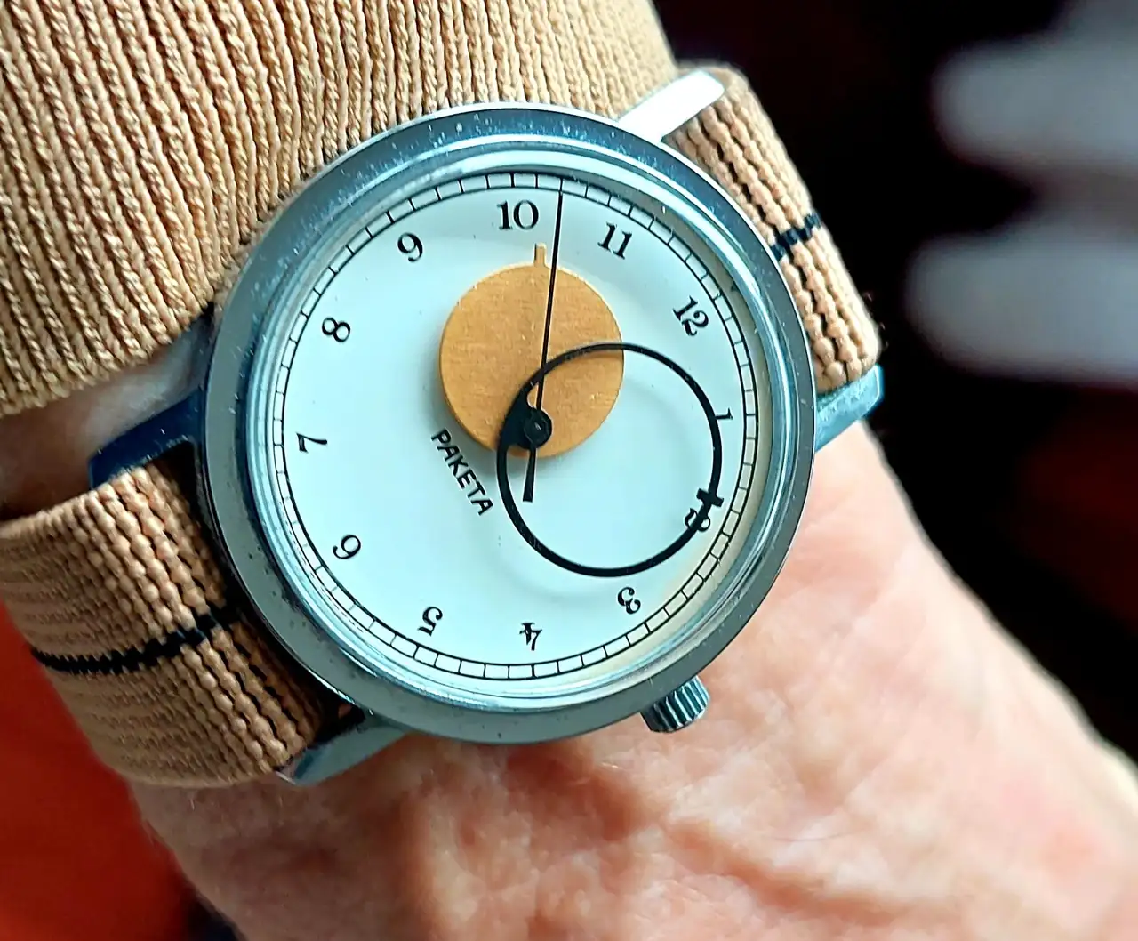 Con mis "abueletes" rusos, me encanta usar brazaletes "raros" como dice mi MDD, como este, que me obsequio un amigo, un brazalete de una sola pieza de acero curvado con unos soportes para colocar el reloj, pese a su apariencia, es muy comodo de usar, el reloj queda asentado por encima del hueso de la muñeca y no se nota su prescencia.