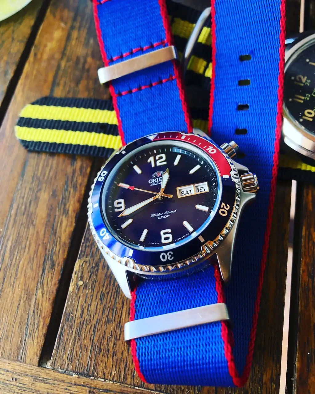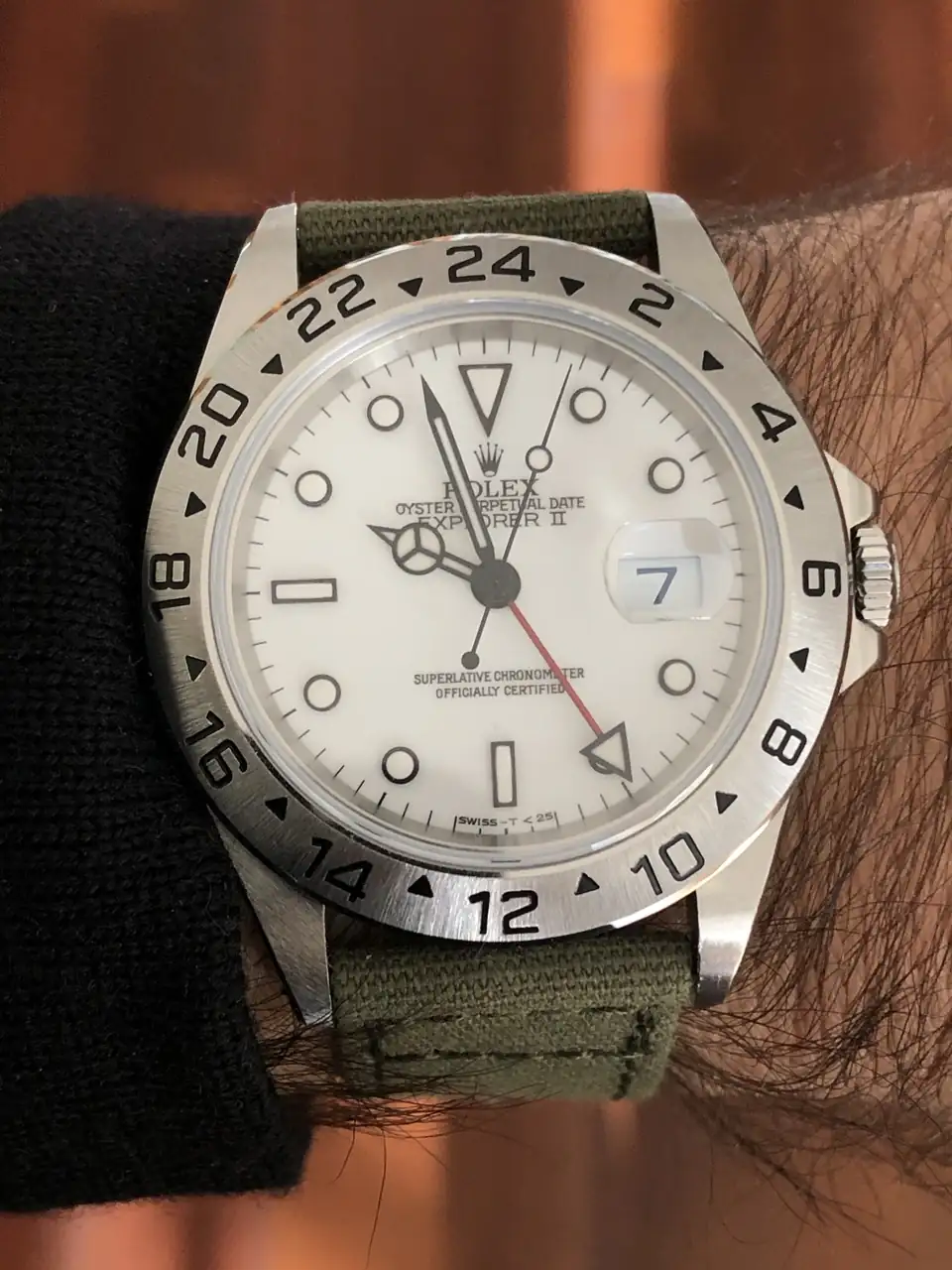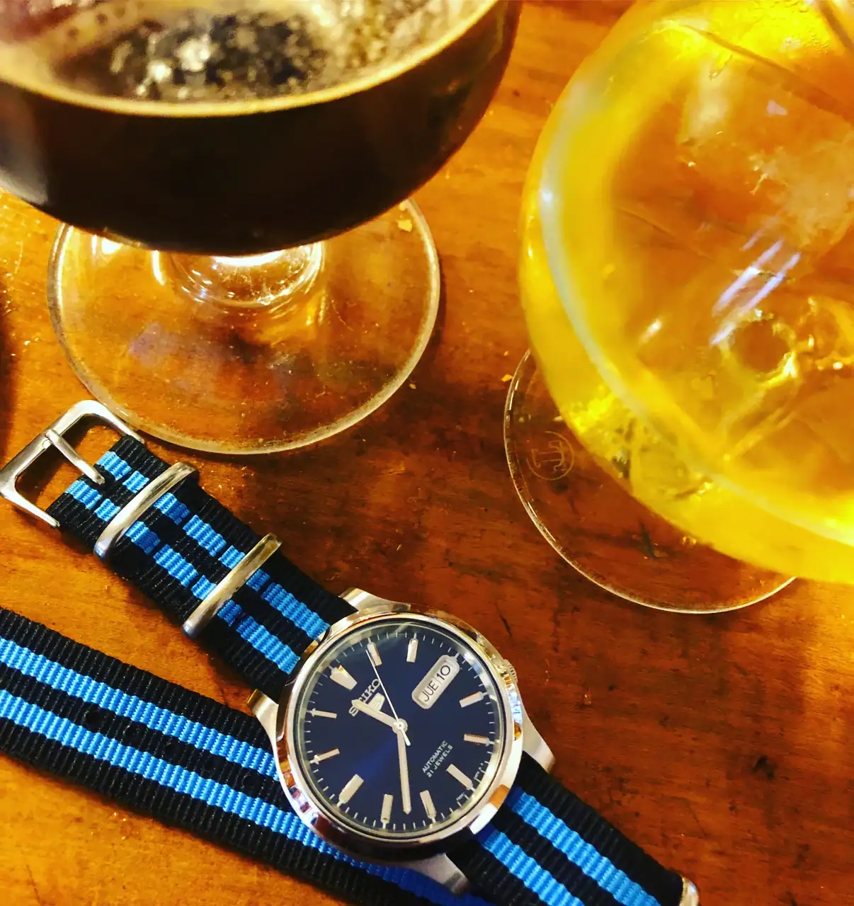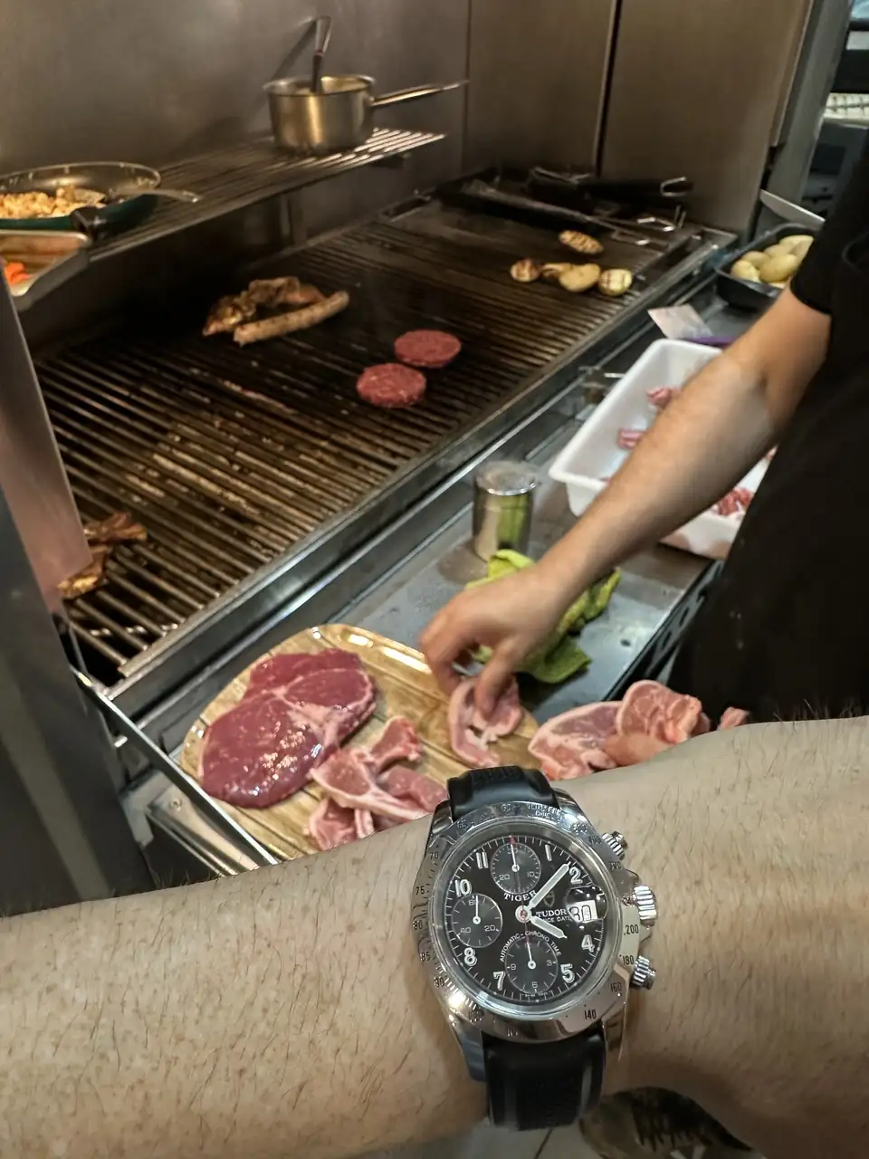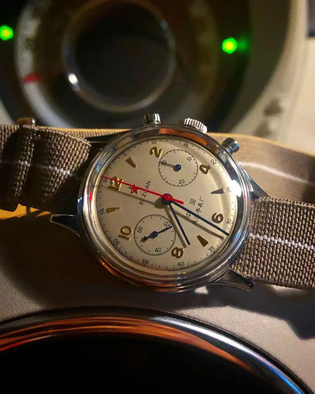 Con mis "abueletes" rusos, me encanta usar brazaletes "raros" como dice mi MDD, como este, que me obsequio un amigo, un brazalete de una sola pieza de acero curvado con unos soportes para colocar el reloj, pese a su apariencia, es muy comodo de usar, el reloj queda asentado por encima del hueso de la muñeca y no se nota su prescencia.