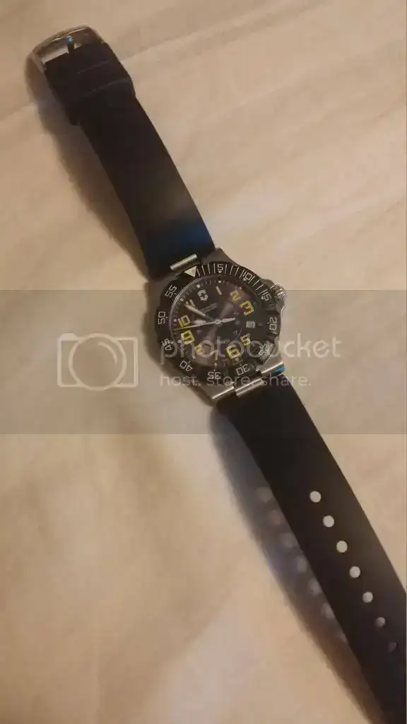 El victorinox. Un reloj de cuarzo muy bonito, a mi gusto ,con mejor estética que los Fórmula 1 de tag heuer, salvando diferencias, es de 40mm, este último lo compre en una tienda de descuento, y no tiene papeles sólo caja interior,el reloj está en excelente estado lo compre hace escasos 3 meses y lo he usado poco.