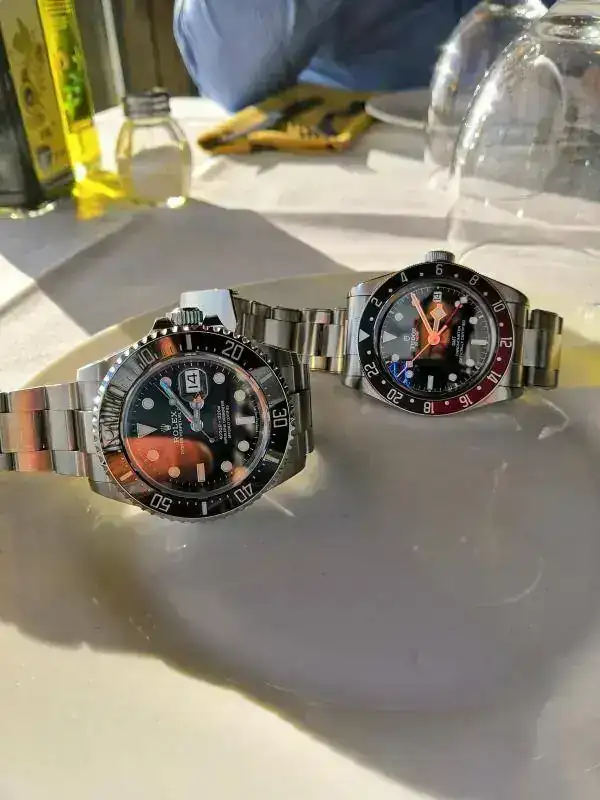 los bichos, uno que para mi es "el rolex" sea dweller 50th aniversario red letter!! Increíble reloj!! Decir que sergi me dejo juguetear con el un rato(muchas gracias) y por su culpa hoy e tenido sueños eroticos con dicho reloj, pelucazo pelucazo y el otro el mio, un black bay gmt, para mi uno de los relojes del año y muy muy muy bonito des de mi punto de vista. 2 bicharrscos buenos. Ahora pasamos a los entrantes