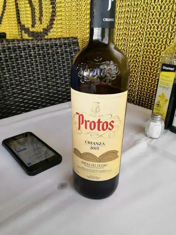 el vino, un protos, vino sobradamente conocido y siempre en su punto.