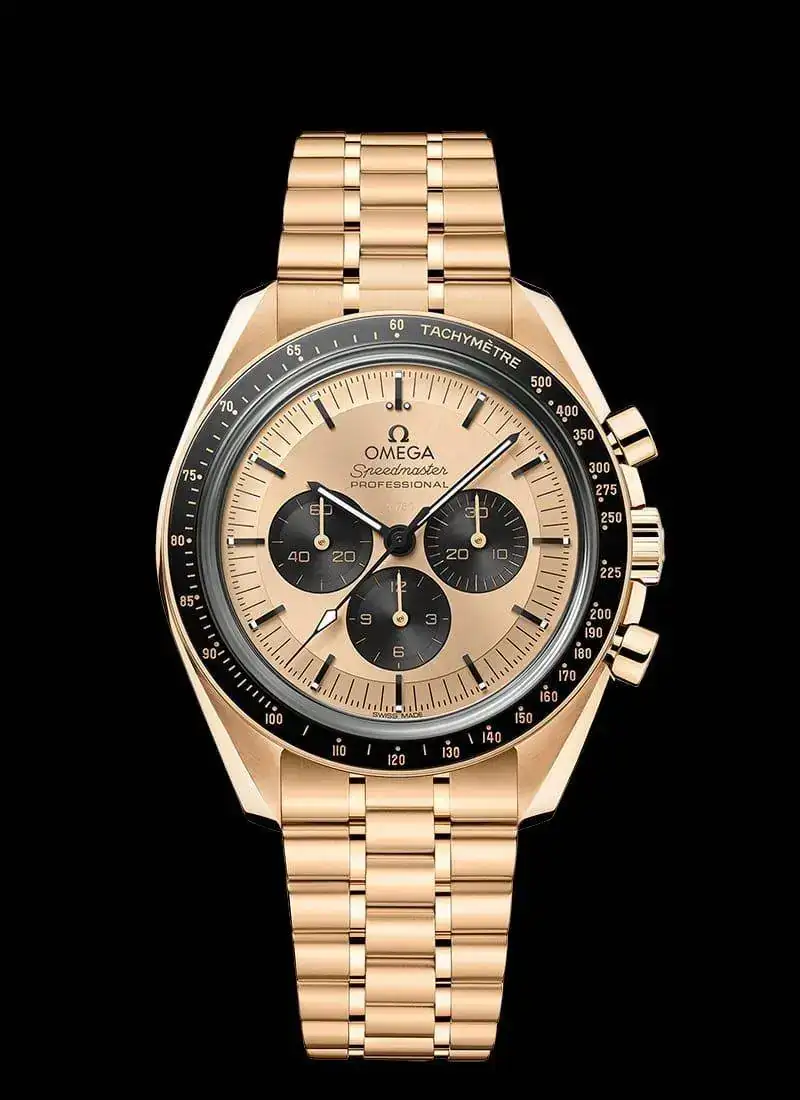 Los speedmaster de oro a precio de platino picado a mano, aunque el panda es bonito. Quizás el verde dn caja acero con bisel negro, habría sido interesante.
