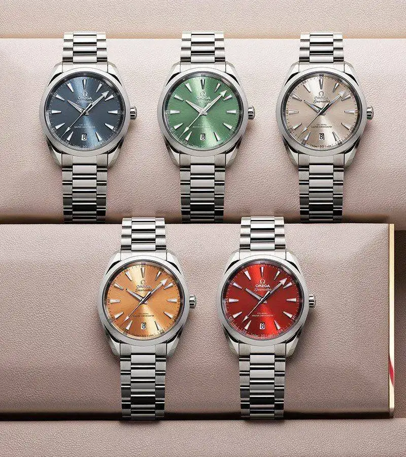 Con los Aquaterra de colores, 3 cuartos de lo mismo (estos AT son toda la caja pulida, de grosor no he visto mucha diferencia...). Esta clara la estrategia de Omega.... Es un poco decepcionante la falta de originalidad...