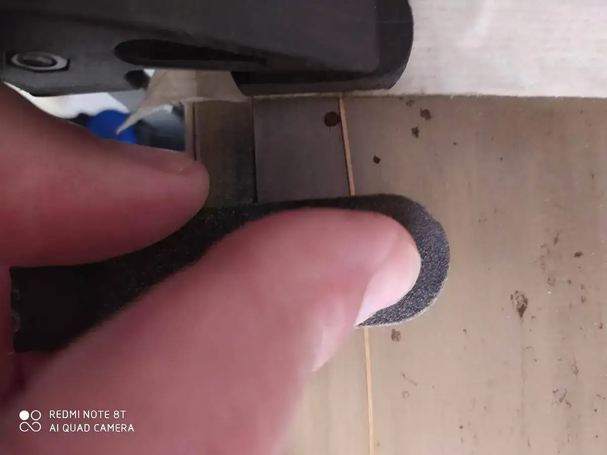 Sobre una plancha de acero se fija el muelle y se rebaja con una buena lima de uñas de esas de carton impregnada de aceite para no destemplar el acero del muelle dandole pasadas longitudinales desde la fijacion hasta el final del muelle consiguiendo un espesor en mi caso de 0,075.