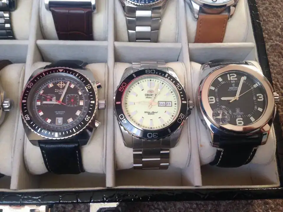 Quiero presentarles como inicio y como termino mi caja de relojes este año 2017, en particular mi caja tuvo bastantes entradas y salidas, algunos vendidos para hacerme de otros y otros cuantos regalados para hacer campo a las nuevas adquisiciones, asi que al dia de hoy me he quedado muy satisfecho con los relojes con los que he terminado, ya el proximo año posiblemente haya algun otro cambio, pero por este año asi cerro mi caja.