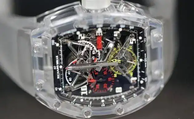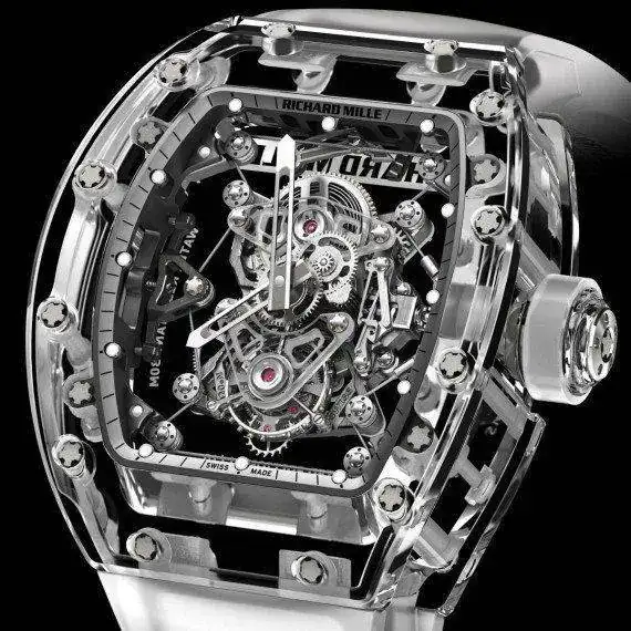 Richard Mille ya había creado un reloj con caja de zafiro, bastante más original y unas sesenta veces más Caro. Un 5 piezas en todo el mundo debido a su complejidad y dificultad para encontrar el precioso mineral tan limpio en el tamaño necesario para conformar la caja.