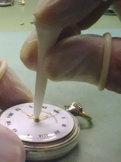 En fin... mirando por otros foros he encontrado gente que incluso colocaba las agujas de sus relojes con palos del 'chupachups' o un bolígrafo, a pesar de que existe maquinaria específica para ello.... aunque incluso hay una especie de dedales de plástico para conseguir resultados satisfactorios.