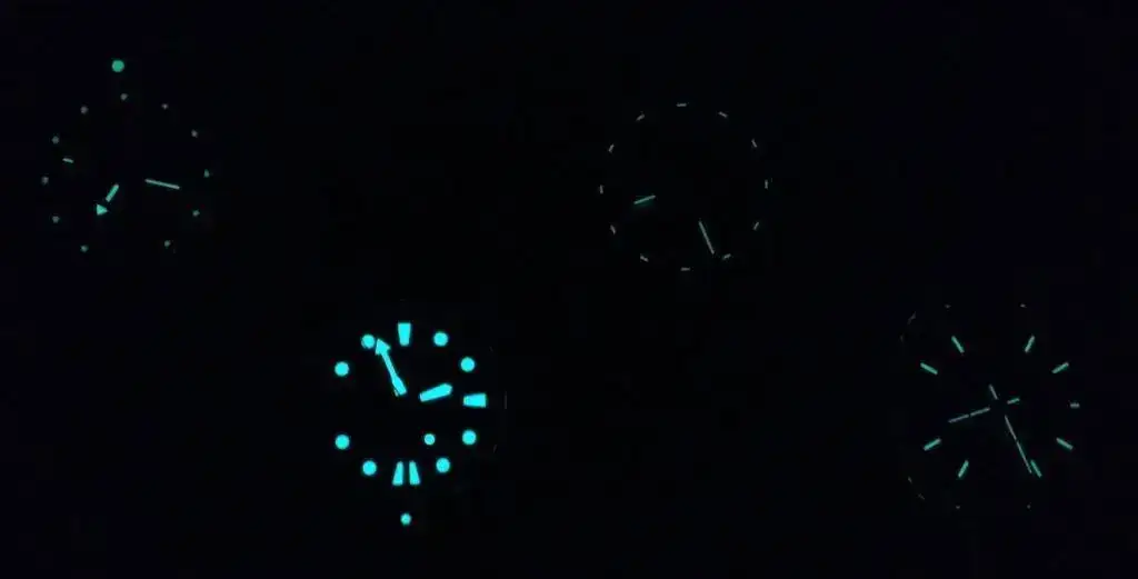 Conclusión y sorpresa (al menos para mí): solo Seiko y Vostok son legibles toda la noche en condiciones reales. Creo que esto significa que, para obtener un rendimiento correcto del material luminiscente, no solo importa la calidad del pigmento, sino la experiencia en la aplicación, la técnica, cantidad y, por supuesto, el mismo diseño del reloj.