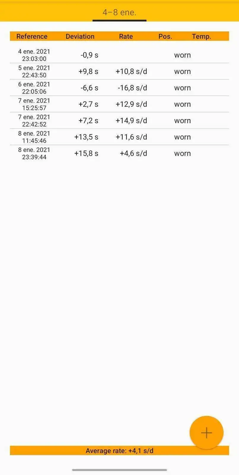Veamos primero, los anteriores registros que tenía, bajo un uso "normal", en el cual uso durante el día el reloj en la muñeca y lo dejo reposar de noche, pero sin el truco de dejarlo descansar en la posición "ideal" (que en realidad ahora ya me pierdo en cuál sería....), sino dejándolo en posiciones variadas aleatoriamente: