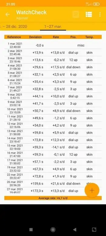 Ambos relojes anda en un ratio mensual similar, pero si examinamos los ratios por cada posición, los resultados son dispares. No hay correspondencia entre un calibre y otro. Y además, ambos empeoran los resultados respecto a los de un uso "normal". Y respecto a anteriores registros en general.