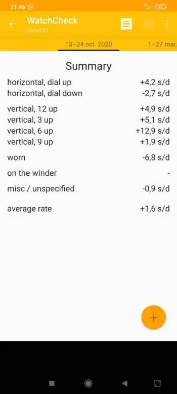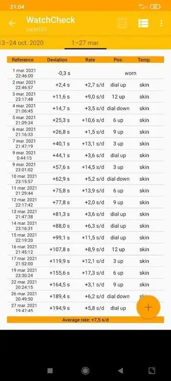 Veamos primero, los anteriores registros que tenía, bajo un uso "normal", en el cual uso durante el día el reloj en la muñeca y lo dejo reposar de noche, pero sin el truco de dejarlo descansar en la posición "ideal" (que en realidad ahora ya me pierdo en cuál sería....), sino dejándolo en posiciones variadas aleatoriamente: