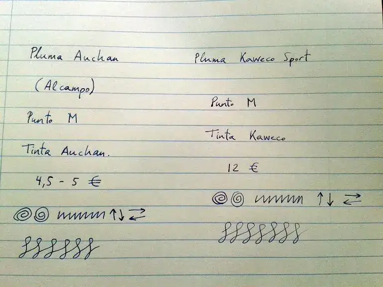 En las imágenes que adjunto indico que la Kaweco me costó 12 € porque es lo que pagué por ella, aunque en la mayoría de los sitios señalan que su precio está en torno a unos 25 €. La diferencia de precio con la pluma de Alcampo es, por tanto de 20 €.