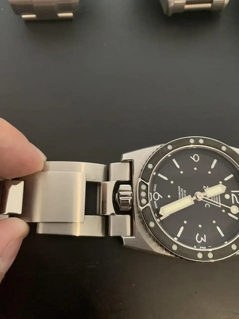 Un reloj de los más cómodos por ser lijero, el bisel es el mejor que tengo, buen agarre y 60clics muy precisos, el ruido que hace al girar-lo es espectacular, el lumen está al nivel del rolex bueno y durable, el armis tiene un ajuste muy bueno con práctica no necessitas sacar-lo de la mano, tiene 3 posiciones fijas y la 4 ya es elástica como el ZRC y aún tiene la extensión de buceo, por eso ya sabéis en invierno ir a esquiar y poner en cima del traje