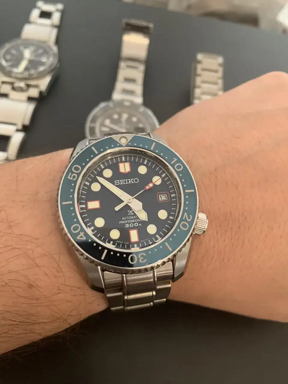 Un clássico japonés en una versión especial Tailandia, un reloj bonito cabecea un poco con el armis pero con una nato o una elástica queda muy pero muy cómodo, el bisel tiene un agarre bueno si los dedos están húmedos escapa un poco, los clics son suaves y precisos también, el lumen de los mejores y el que dura más, solo el ZRC el más brillante, el armis es bueno, el cierre tiene un ajuste muy feo pero muy práctico, solo tienes de levantar el seguro del cierre y ajustar, el cierre de estos seiko deberían de ser revistos no están al nivel de los demás