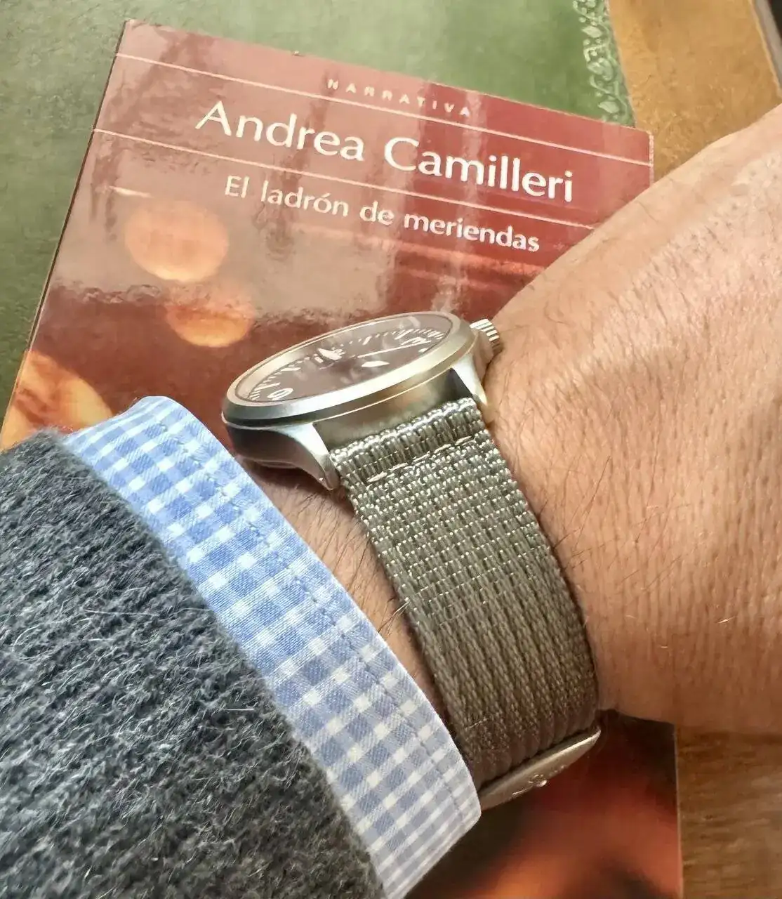 Precioso! Qué bonito reloj y que bien le queda ese tipo de correa!👌Hoy estrenando correa textil de Sinn, verde oliva grisácea. Es más estrecha de lo que parece en la foto, sin llegar a reducirse en la hebilla
