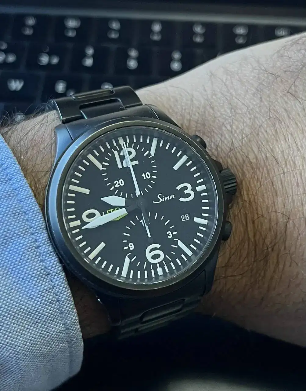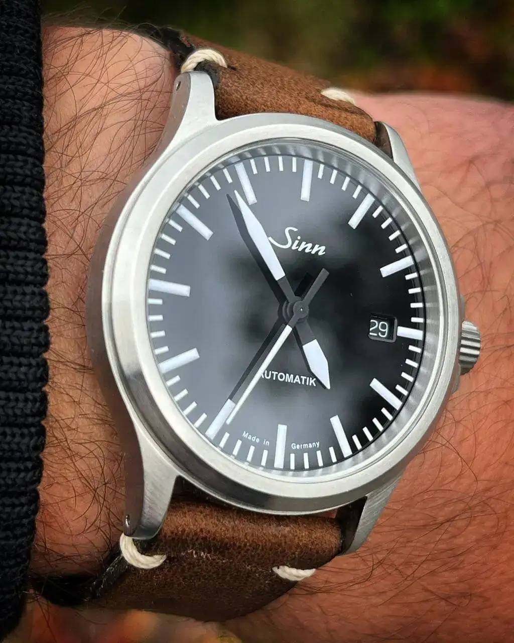 Le queda muy bien 👍Hoy estrenando correa textil de Sinn, verde oliva grisácea. Es más estrecha de lo que parece en la foto, sin llegar a reducirse en la hebilla