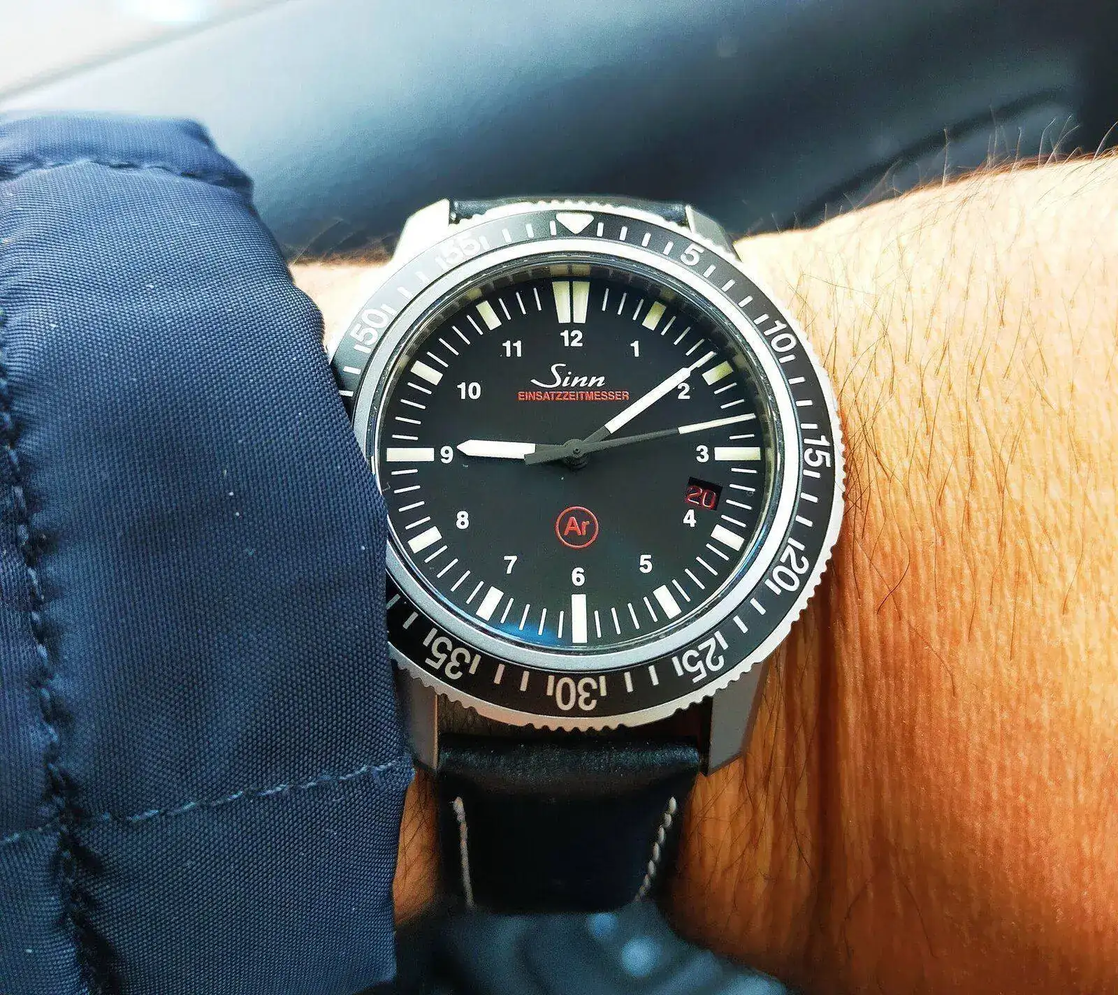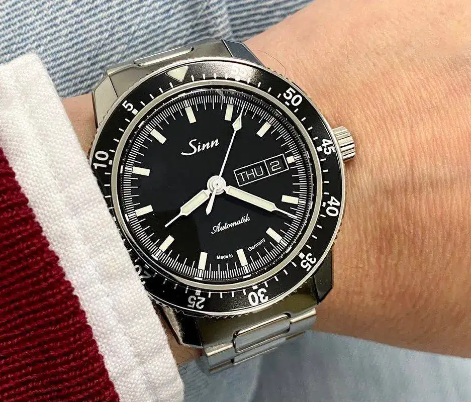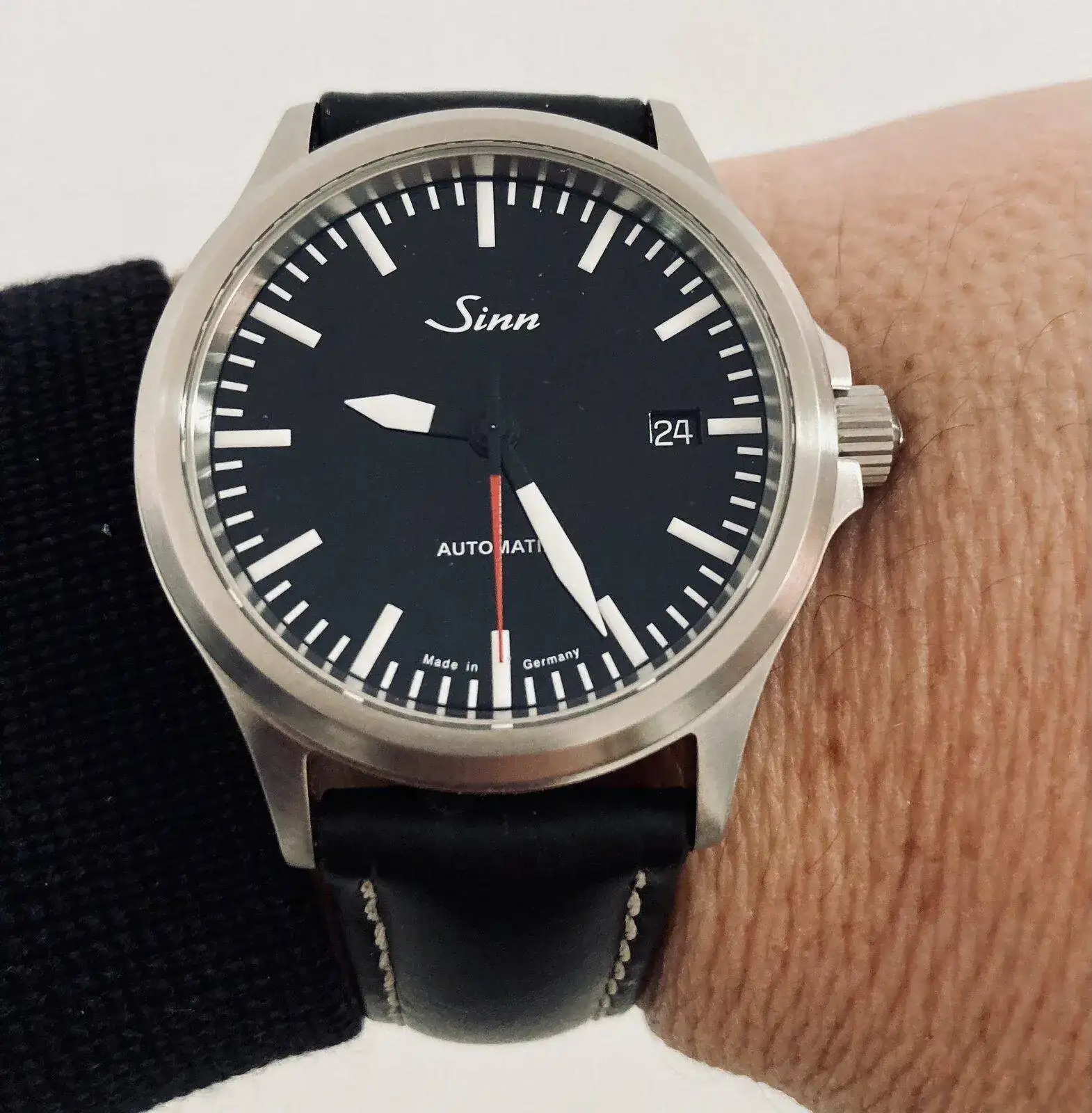 Hola a todos los Sinners. Mi primer Sinn q ya presenté hace unos días en el general. Tiene una desviación de aprox -5 segundos al día y me resulta muy cómodo en mi muñeca de 17cm, especialmente por sus escasos 11mm de altura. Un saludo a todos.