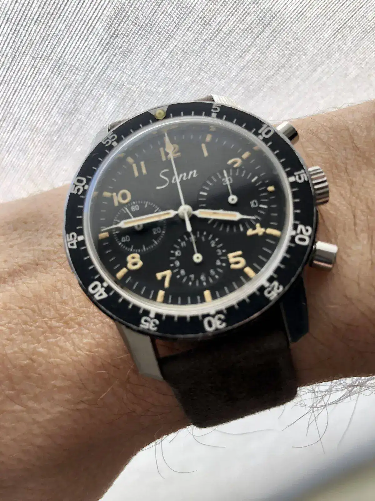 Tengo una muñeca similar y el U1 (44 mm) podría ser demasiado grande. Esas agujas me han atraído siempre.Me alegro q te guste Georges. Desde que lo tengo (un mes aprox) tiene una desviación de +3 segundos. Comodísimo en la muñeca (17cm) por sus dimensiones contenidas. Y el lumen aguanta toda la noche. Un saludo