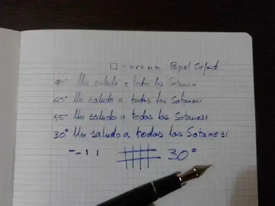muy útil la foto de escritura ¿sería mucho pedir algo parecido pero escribiendo una frase a esos ángulos diferentes? ando dudando si me merecería la pena probar uno de esos plumines y no he visto ninguna muestra de escritura en condiciones, creo que habría muchos en el foro interesados.