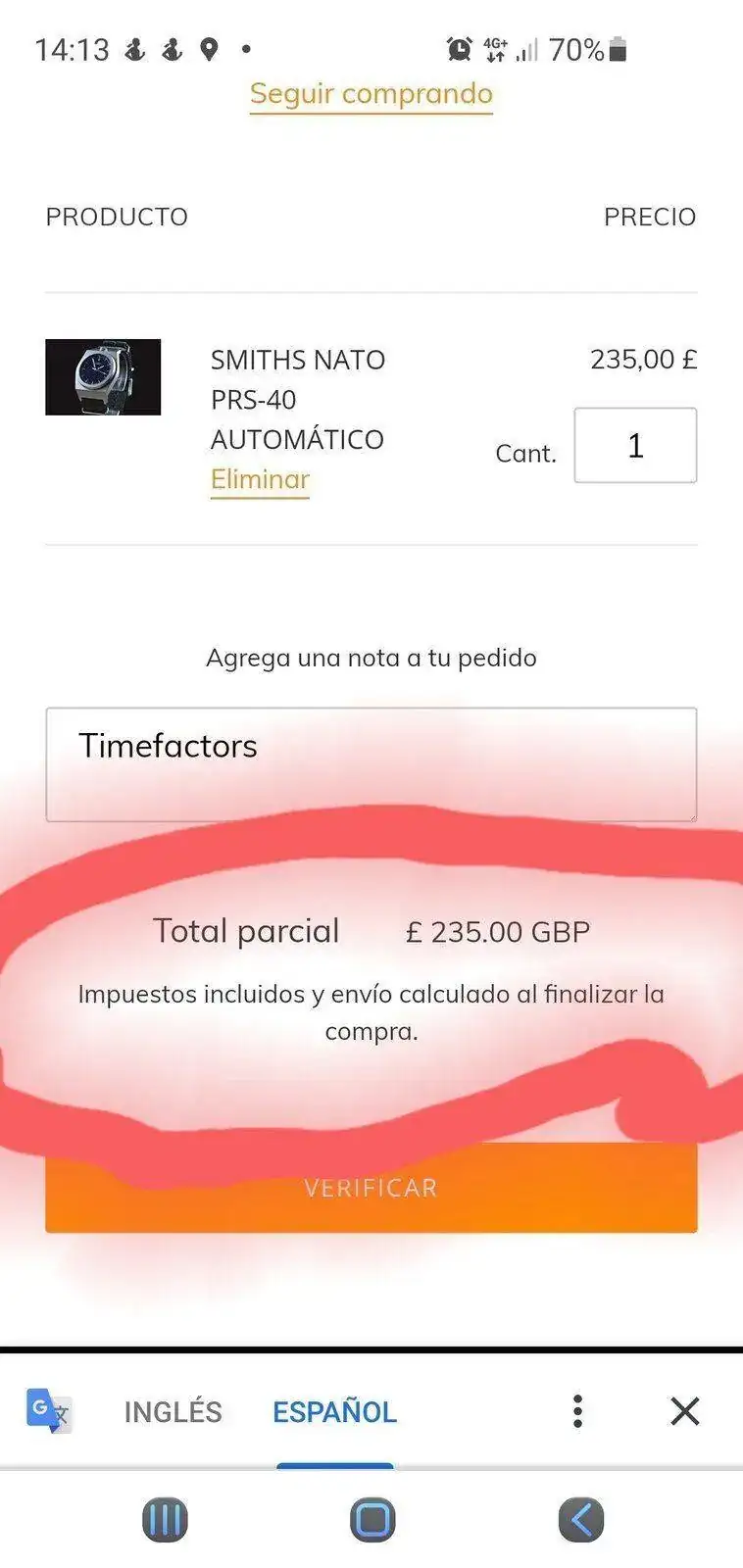 Hasta ahí todo correcto, entro en la wep para ver en cuanto se pondría con gastos de envío y cual es mi sorpresa