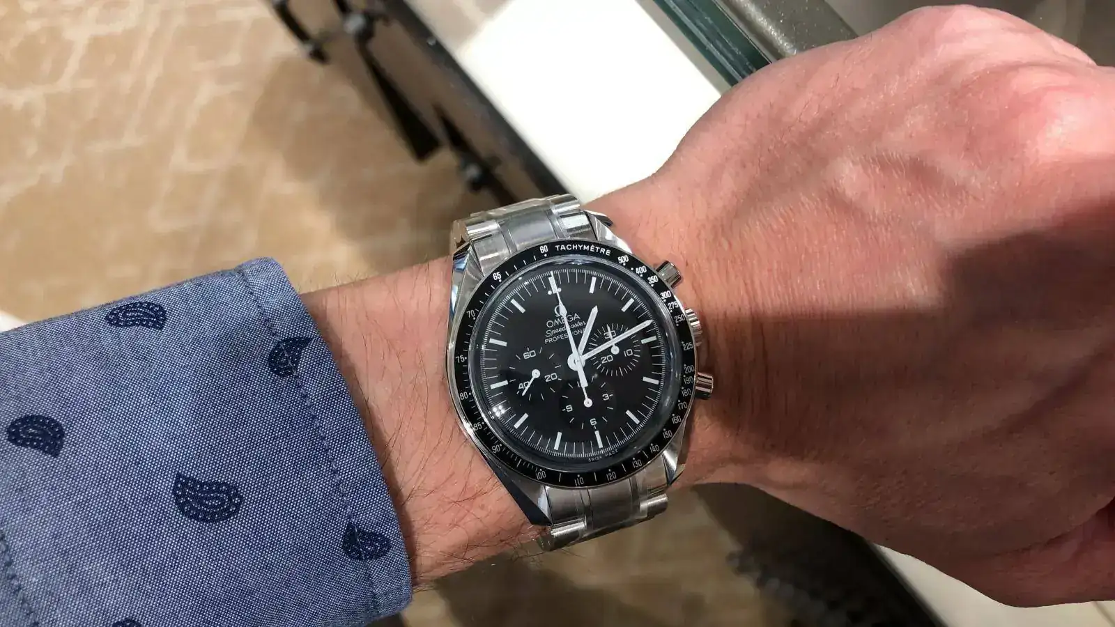 Y luego llegan con el Speedmaster Pro. Y aquí se acaba la historia básicamente. Sé que solo hablamos de relojes, pero al ponérmelo en la muñeca me olvidé incluso de las olitas azules por un momento. De hecho me sacaron también la versión de cristal de zafiro pero la de plexi me pareció tan bonita, tan equilibrada y tan coj_nuda que bueno...