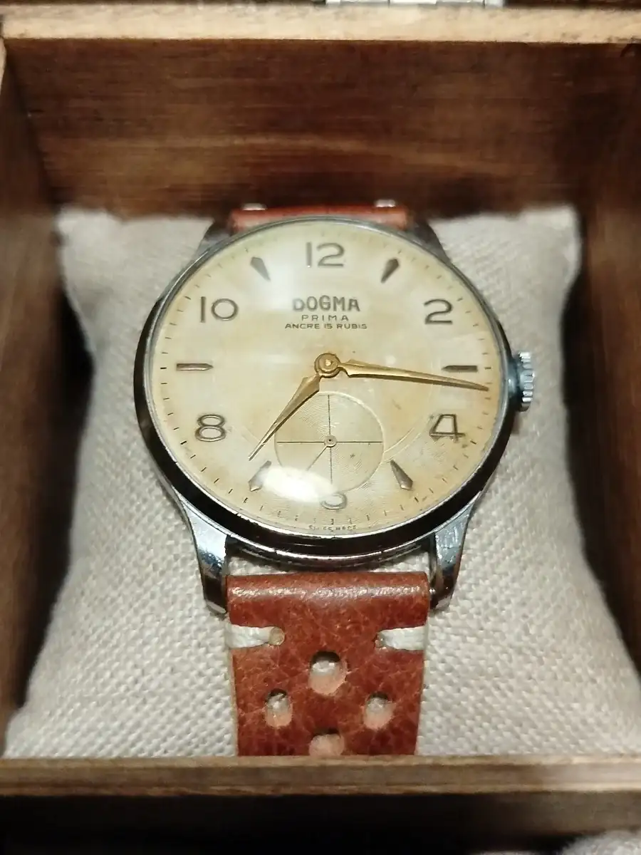 El Dogma está ahí porque me gusta su estética, me gusta como suena y porque me conecta con una época en la que la relojería era otra cosa. Tampoco saldrá de casa, pero es posible que salga de la caja para dejar ese sitio a una última y bien meditada incorporación. Lo que tengo claro es que como mucho entrará uno más para ver esos 6 huecos ocupados. En alguna ocasión he tenido más y me ha generado ansiedad. Soy de tener pocas cosas.