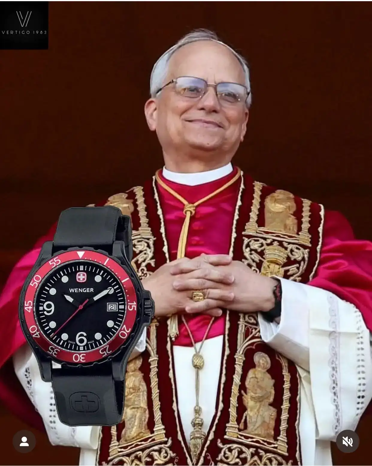 Según he visto por Instagram, el Cardenal Prevost, ahora León XIV, ha llevado hoy un su elección un Wenger de cuarzo de unos 200€.