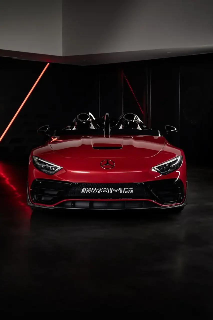 “El Concept Mercedes-AMG PureSpeed ofrece una visión de lo que probablemente sea la forma más directa de experimentar el placer de conducir. Radicalmente abierto, ni el techo ni el parabrisas separan a los dos pasajeros de los elementos. Se puede experimentar la luz, el aire y la pasión sin filtros, con todos los sentidos. Como concepto de nuestro primer vehículo Mythos, encarna el máximo nivel de exclusividad. Elementos de diseño como el HALO también crean una sensación de Fórmula 1”.