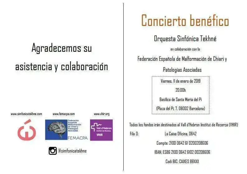 La recaudación del evento, será donada a la unidad de investigación del hospital universitario valle Hebrón, (VHIR – UNNIN) donde se investiga dicha malformación.